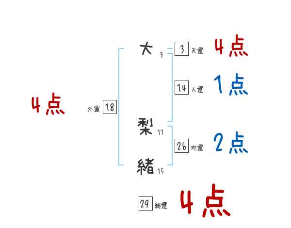 大梨緒さんの画数の鑑定結果