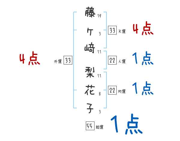 藤ヶ﨑梨花子さんの画数の鑑定結果