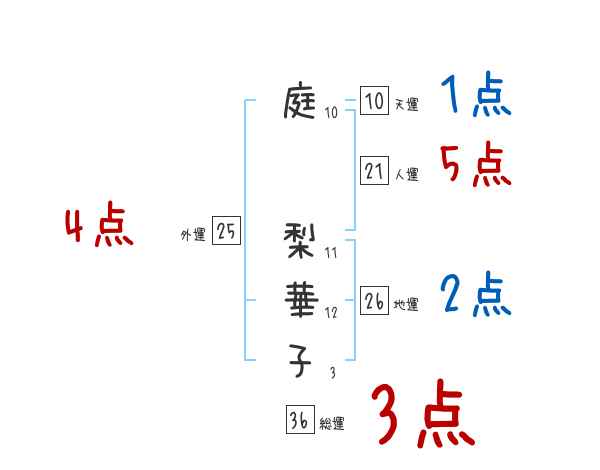 庭梨華子さんの画数の鑑定結果