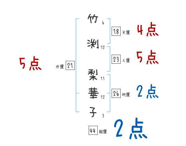人運![]() | 竹渕梨華子さんの人運は23画の5つ星!想像力に優れ活力がある。一代で成功し名誉を手に入れる。 性格や才能などを表す2番目に重要な運勢です。人間関係や協調性、社会的な成功に影響します。主に20歳から50歳ぐらいまでの中年期の運勢を表します。 |