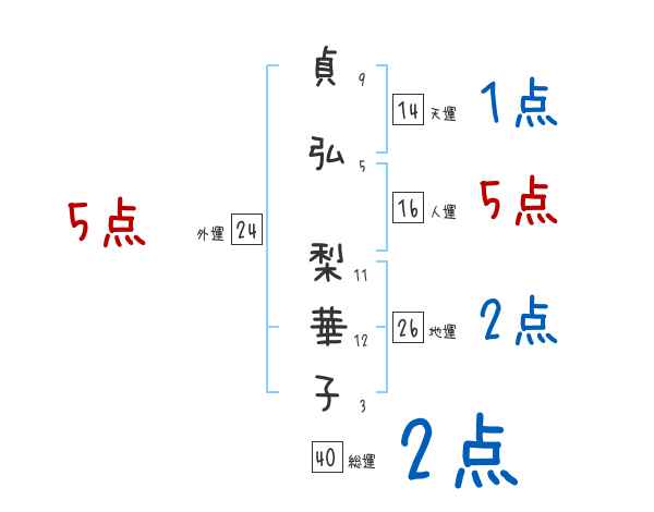 貞弘梨華子さんの画数の鑑定結果
