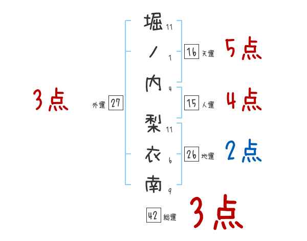 堀ノ内梨衣南さんの外運は27画の3つ星