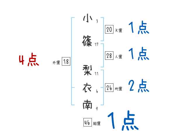小篠梨衣南さんの画数の鑑定結果