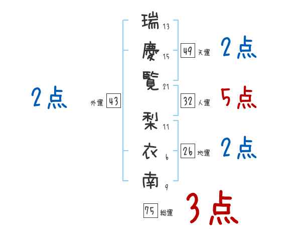 瑞慶覧梨衣南さんの画数の鑑定結果