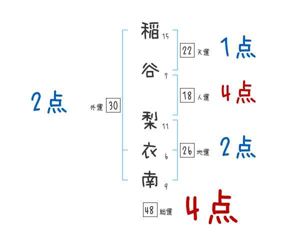 外運![]() | 稲谷梨衣南さんの外運は30画の2つ星!浮き沈みの激しさに注意しましょう。 生活面を象徴する運勢です。外部から受ける影響力を表し、結婚運、家庭運や職場、環境への順応性を表します。 |