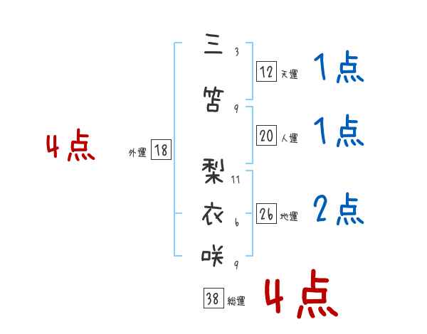 総運![]() | 三笘梨衣咲さんの総運は38画の4つ星!温厚な性格で技術的な才能を発揮する。職人的な仕事に向いている。 あなたの人生を表す1番重要な運勢です。生涯を通じて影響する総合運となり、主に50歳以降の晩年期に影響を及ぼします。 |