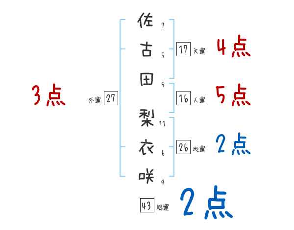 佐古田梨衣咲さんの画数の鑑定結果