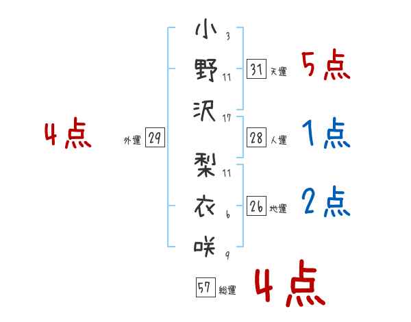 小野沢梨衣咲さんの画数の鑑定結果