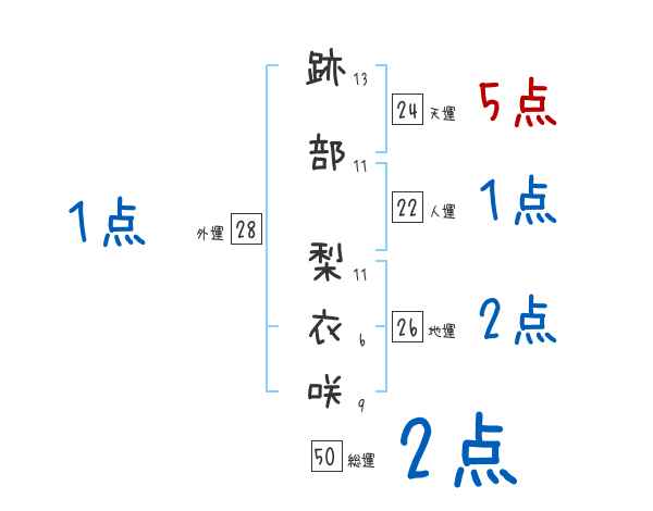 跡部梨衣咲さんの画数の鑑定結果