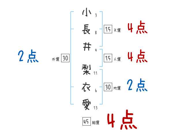 小長井梨衣愛さんの画数の鑑定結果