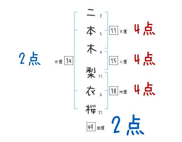 二本木梨衣桜さんの画数の鑑定結果