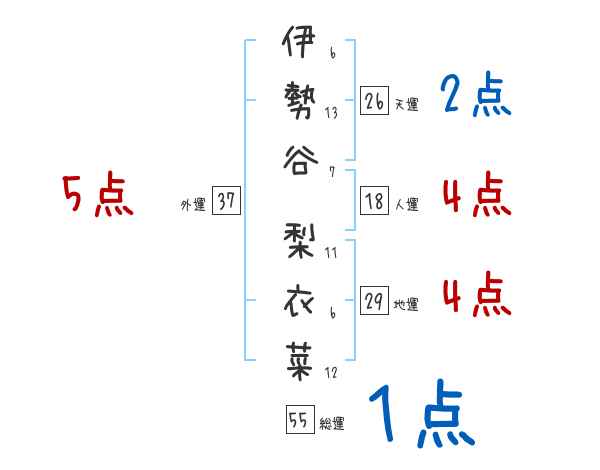 伊勢谷梨衣菜さんの画数の鑑定結果