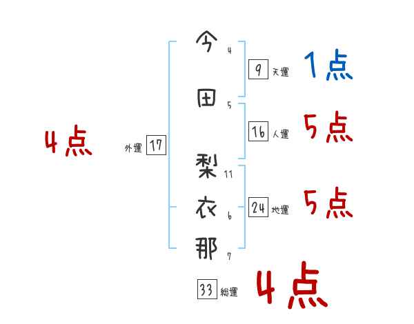 今田梨衣那さんの画数の鑑定結果