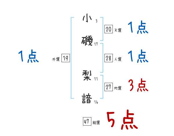 小磯梨諳さんの画数の鑑定結果