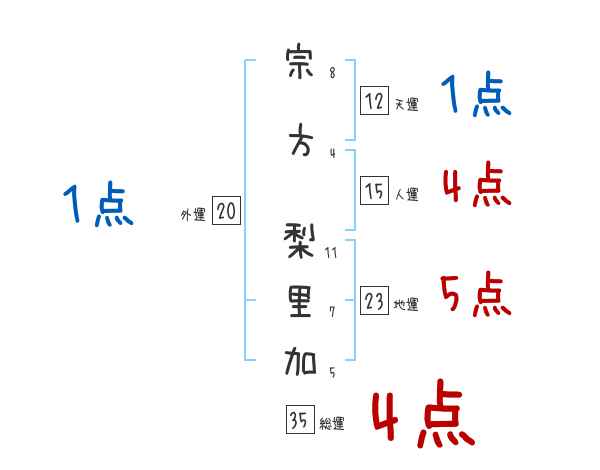 総運![]() | 宗方梨里加さんの総運は35画の4つ星!温厚な性格で感受性が高い。穏和な性格で人望が厚い。 あなたの人生を表す1番重要な運勢です。生涯を通じて影響する総合運となり、主に50歳以降の晩年期に影響を及ぼします。 |