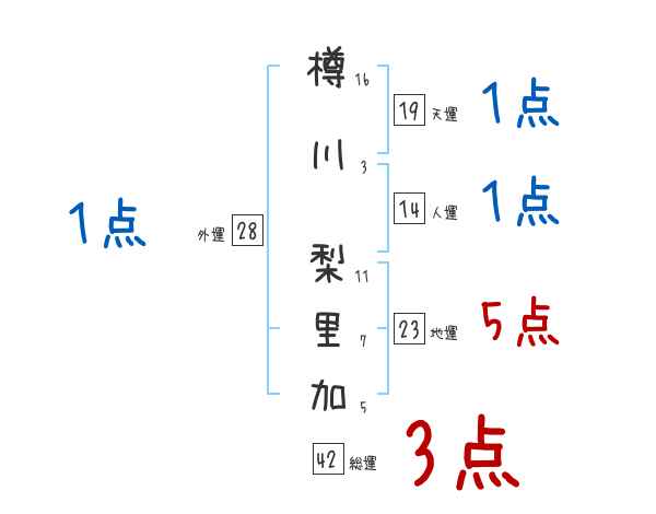 総運![]() | 樽川梨里加さんの総運は42画の3つ星!病気に注意。多芸であるが消極的でおとなしい。 あなたの人生を表す1番重要な運勢です。生涯を通じて影響する総合運となり、主に50歳以降の晩年期に影響を及ぼします。 |
