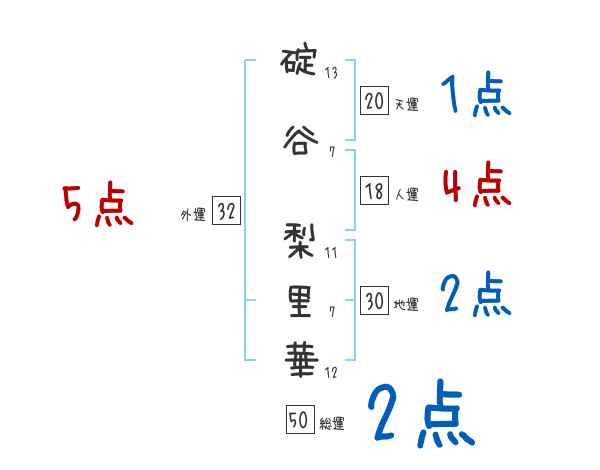 外運![]() | 碇谷梨里華さんの外運は32画の5つ星!柔軟性があり成功する。チャンスが多く金運が良い。 生活面を象徴する運勢です。外部から受ける影響力を表し、結婚運、家庭運や職場、環境への順応性を表します。 |