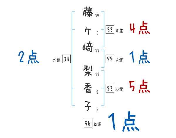 藤ヶ﨑梨香子さんの画数の鑑定結果