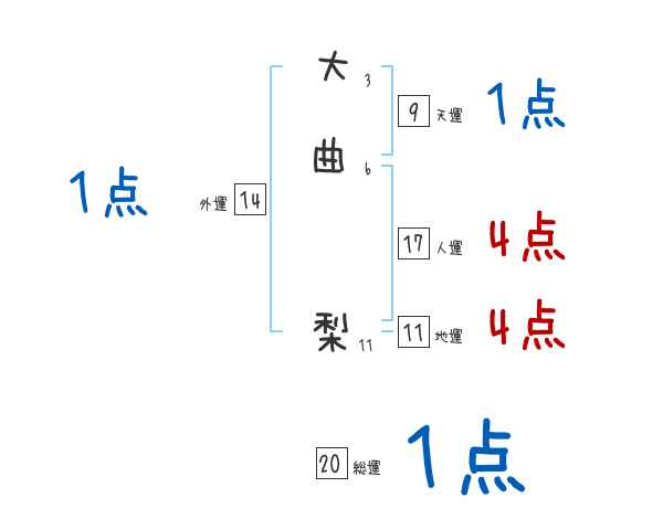 大曲梨さんの画数の鑑定結果