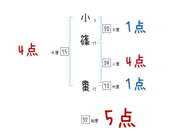 小篠棗さんの画数の鑑定結果