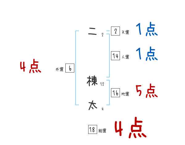 二棟太さんの画数の鑑定結果