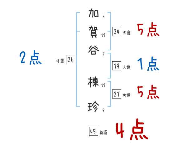 加賀谷棟珍さんの画数の鑑定結果