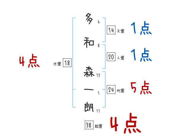 天運![]() | 多和森一朗さんの天運は14画の1つ星!人に対して優しいがストレスを溜め込みがち。人間関係のトラブルを避けるよう気をつけましょう。 家系が持つ宿命的な運勢を表します。祖先から受け継いだ苗字ですので自分の力が及びません。家柄を象徴します。 |