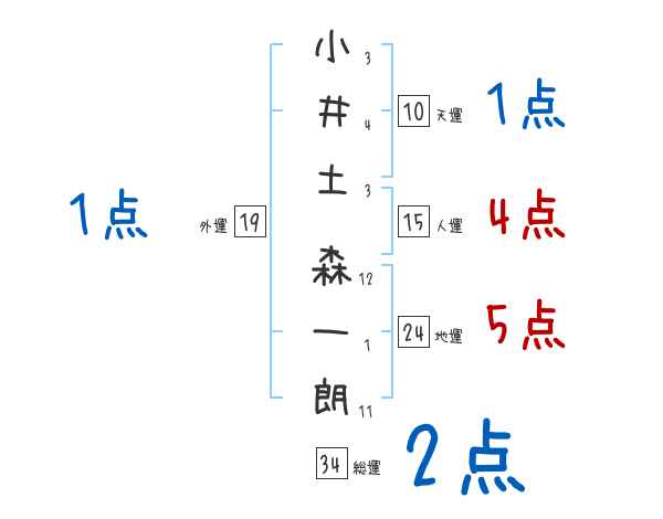 総運![]() | 小井土森一朗さんの総運は34画の2つ星!独創性に優れるが、自尊心が強く災難に注意しましょう。 あなたの人生を表す1番重要な運勢です。生涯を通じて影響する総合運となり、主に50歳以降の晩年期に影響を及ぼします。 |