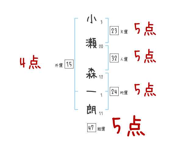 小瀬森一朗さんの外運は15画の4つ星