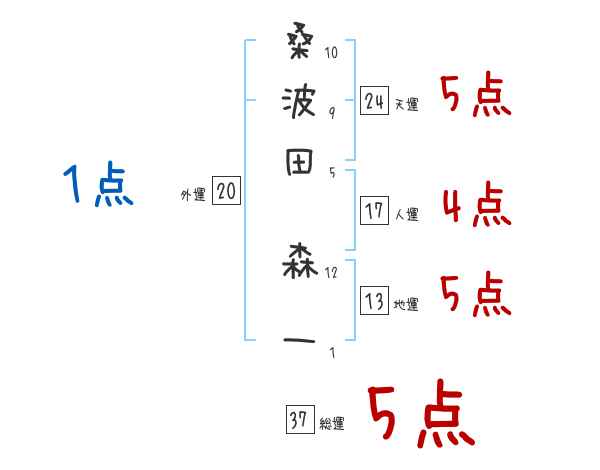 桑波田森一さんの画数の鑑定結果