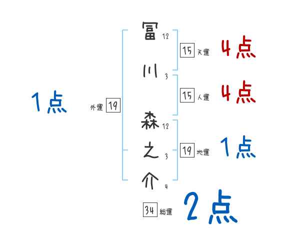 冨川森之介さんの画数の鑑定結果