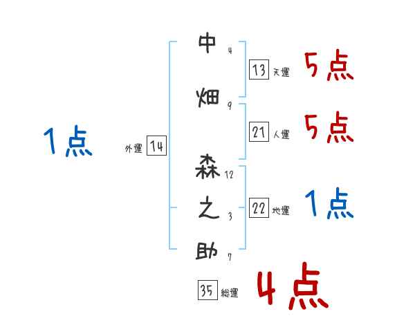 天運![]() | 中畑森之助さんの天運は13画の5つ星!才能に恵まれ人気がある。名声を手に入れる。円満な人生。 家系が持つ宿命的な運勢を表します。祖先から受け継いだ苗字ですので自分の力が及びません。家柄を象徴します。 |