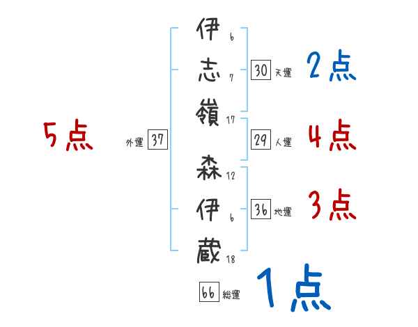 伊志嶺森伊蔵さんの画数の鑑定結果