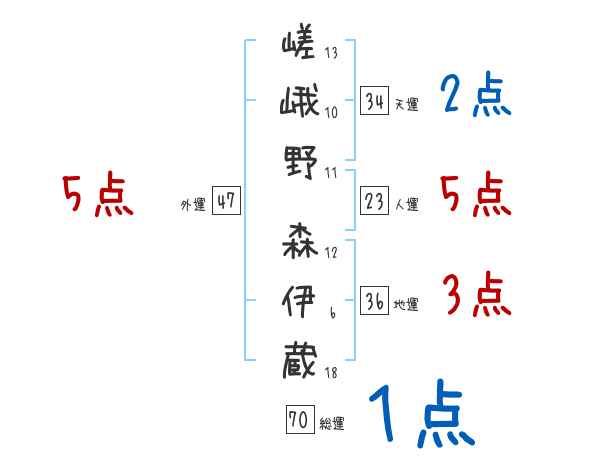 嵯峨野森伊蔵さんの画数の鑑定結果