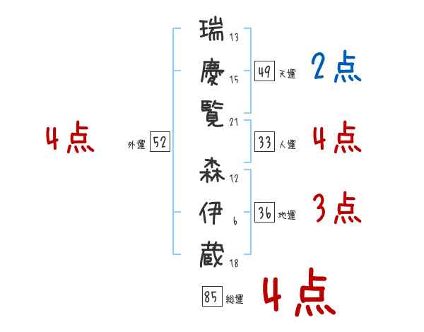 瑞慶覧森伊蔵さんの画数の鑑定結果