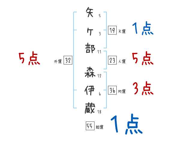 矢ヶ部森伊蔵さんの画数の鑑定結果