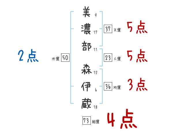 天運![]() | 美濃部森伊蔵さんの天運は37画の5つ星!努力家で順応性に優れる。現実的な考え方ができ忠実に物事をこなす。 家系が持つ宿命的な運勢を表します。祖先から受け継いだ苗字ですので自分の力が及びません。家柄を象徴します。 |