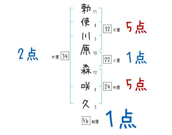 天運![]() | 勅使川原森咲久さんの天運は32画の5つ星!柔軟性があり成功する。チャンスが多く金運が良い。 家系が持つ宿命的な運勢を表します。祖先から受け継いだ苗字ですので自分の力が及びません。家柄を象徴します。 |