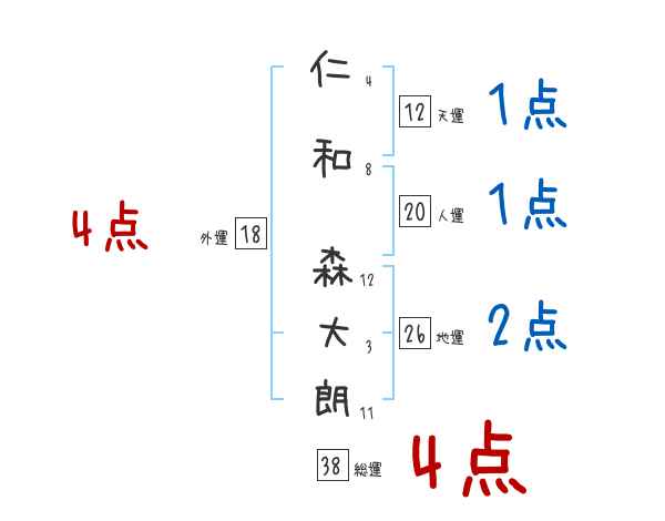 地運![]() | 仁和森大朗さんの地運は26画の2つ星!波瀾万丈かも。信頼できる人を大事にしましょう。 個性を表す基礎的な運勢です。性格形成や対人関係、行動力など家庭環境に影響されます。主に誕生してから20歳くらいまでの若年期の運勢を表します。 |