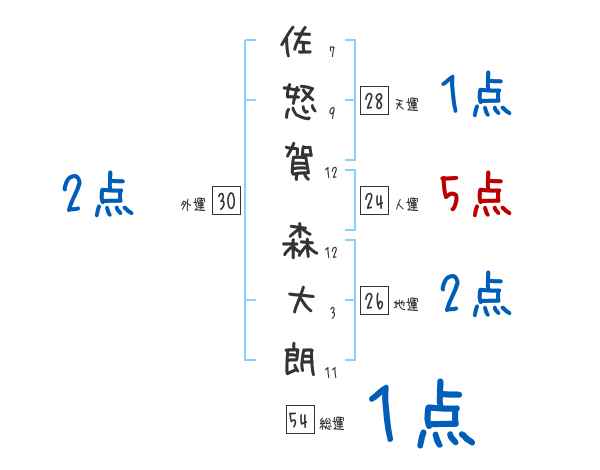 佐怒賀森大朗さんの画数の鑑定結果