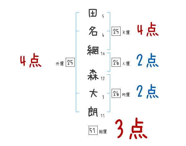 田名網森大朗さんの画数の鑑定結果