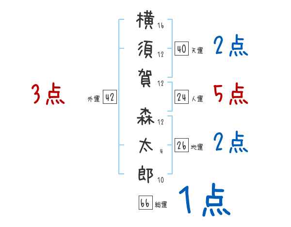 横須賀森太郎さんの画数の鑑定結果