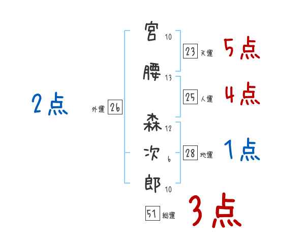 家系が持つ宿命的な運勢を表します。祖先から受け継いだ苗字ですので自分の力が及びません。家柄を象徴します。