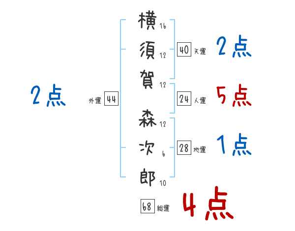 横須賀森次郎さんの画数の鑑定結果