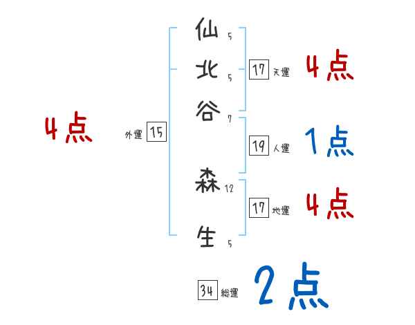 仙北谷森生さんの画数の鑑定結果