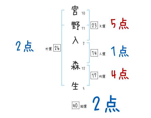 宮野入森生さんの画数の鑑定結果