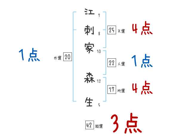 総運![]() | 江刺家森生さんの総運は42画の3つ星!病気に注意。多芸であるが消極的でおとなしい。 あなたの人生を表す1番重要な運勢です。生涯を通じて影響する総合運となり、主に50歳以降の晩年期に影響を及ぼします。 |