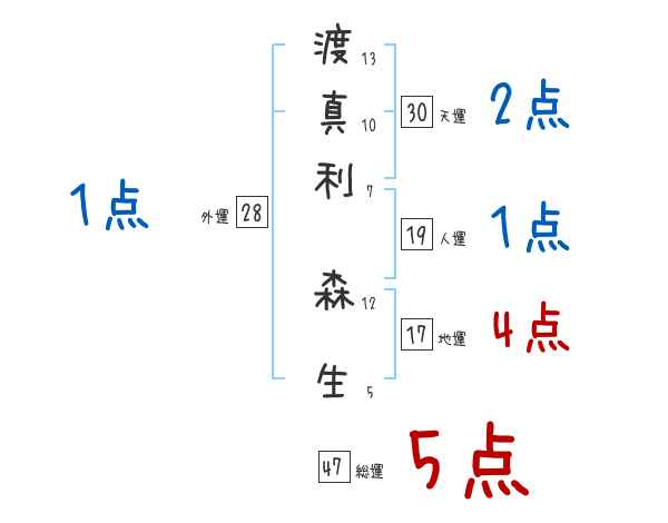 渡真利森生さんの画数の鑑定結果
