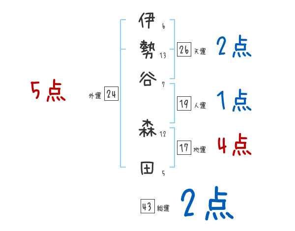 伊勢谷森田さんの画数の鑑定結果
