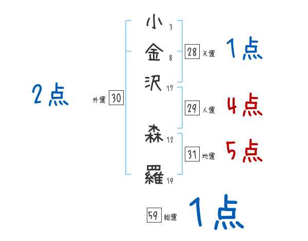 小金沢森羅さんの画数の鑑定結果